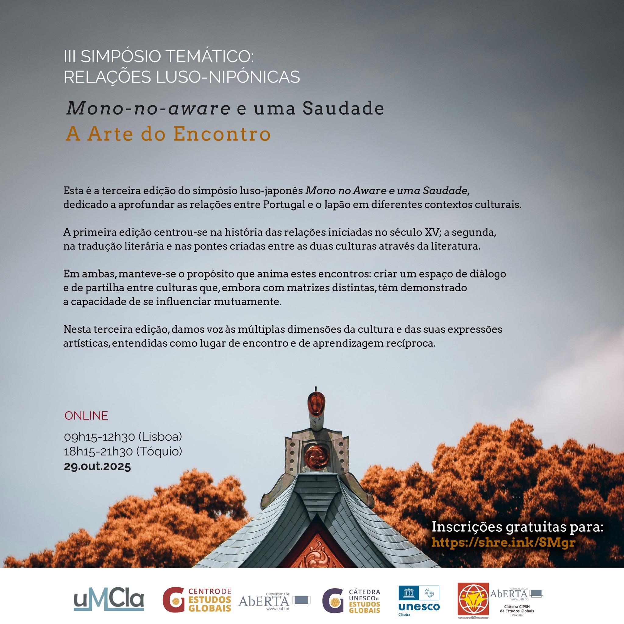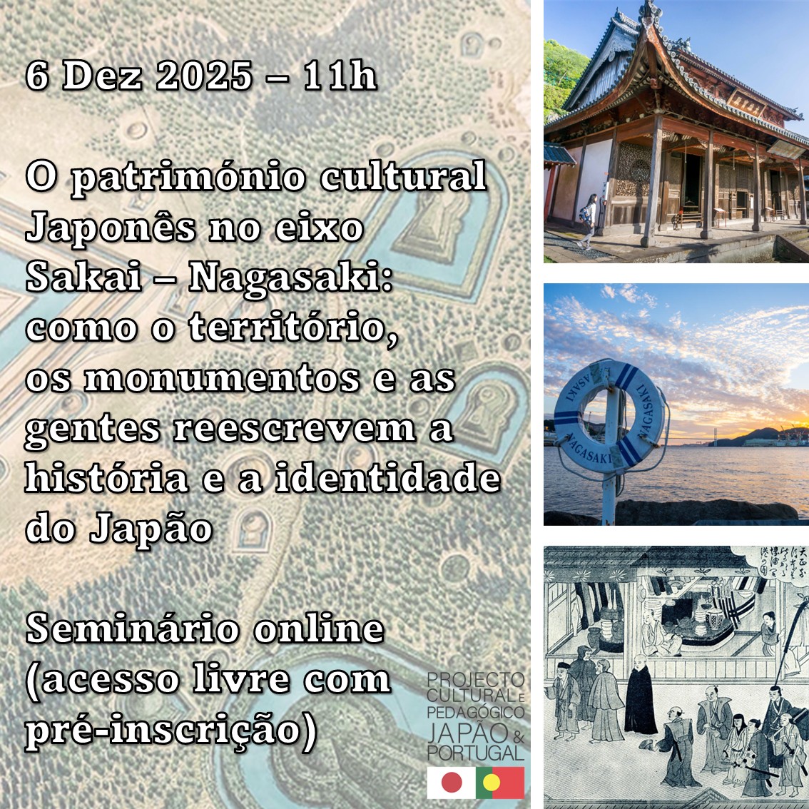 Como anunciado na nossa programação no início do ano letivo, no próximo sábado de manhã (em horário de Portugal Continental), vamos realizar um Seminário Online dedicado a alguns dos pontos de passagem e visita-guiada eleitos para os programas de Visita Cultural ao Japão de 2026. A sessão é especialmente adequada para os nossos alunos regulares, nomeadamente os que frequentaram as sessões de História do Japão no curso intensivo de Verão ou no curso modular desde Setembro, bem como para os alunos participantes nos itinerários de Visita ao Japão já preenchidos. Mesmo não sendo um dos nossos alunos regulares, pode solicitar participação, ficando a mesma confirmada uma vez que sejam concluídos os procedimentos de adesão ao Clube Privado do nosso Projeto Cultural e Pedagógico. A participação da sessão em si é de acesso gratuito.