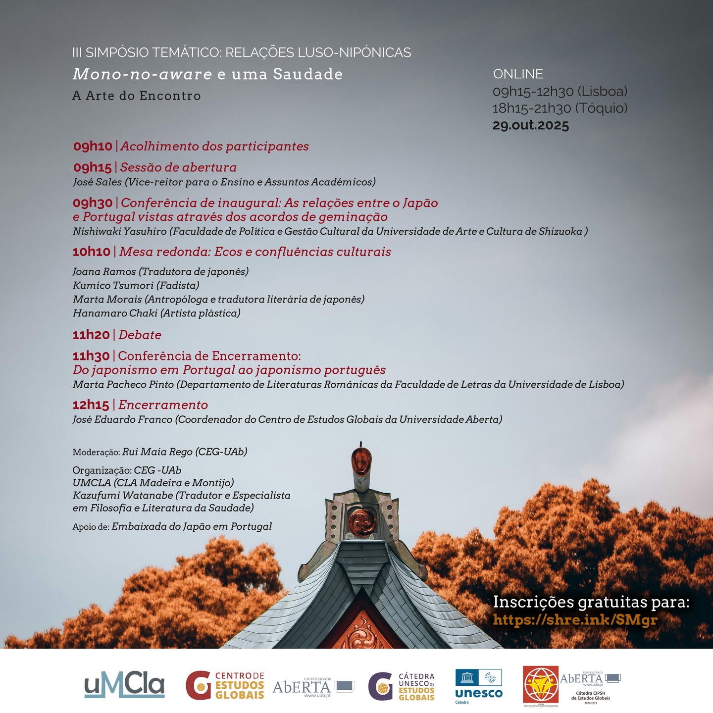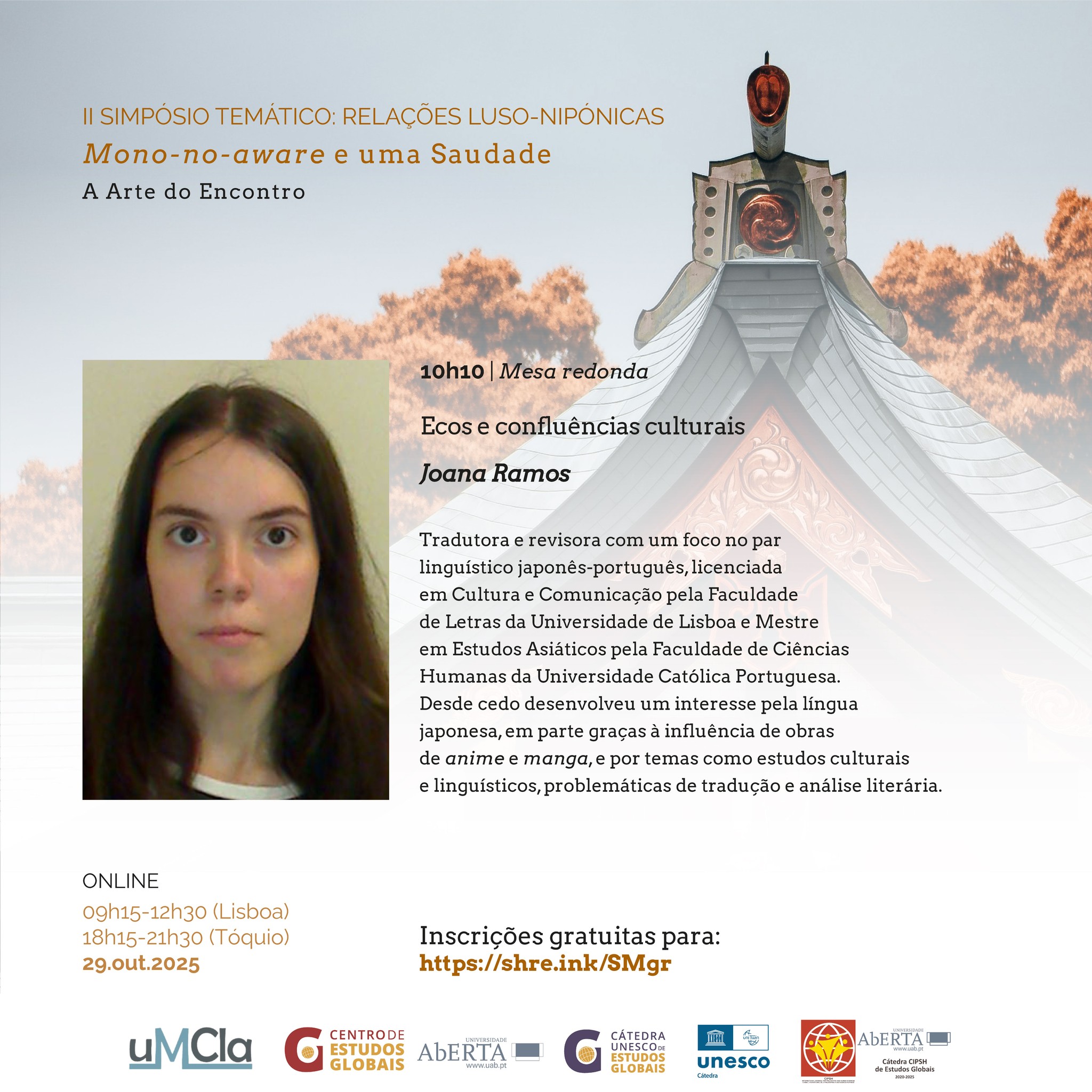 A partir das das 9:30h – sessão única desta manhã e, extraordinariamente, no ciclo dos estudos japoneses online, devido à temática.