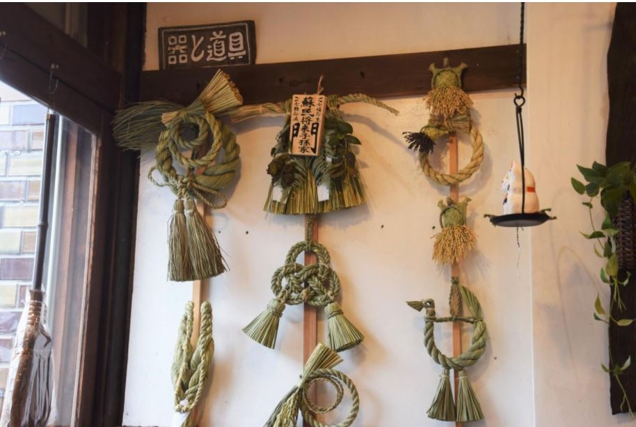 Foto: Shimekazari – しめ飾り – Decoração de corda crua, sobre a porta ou junto à entrada, para separar a dimensão pura da impura e acolher os espíritos benéficos.