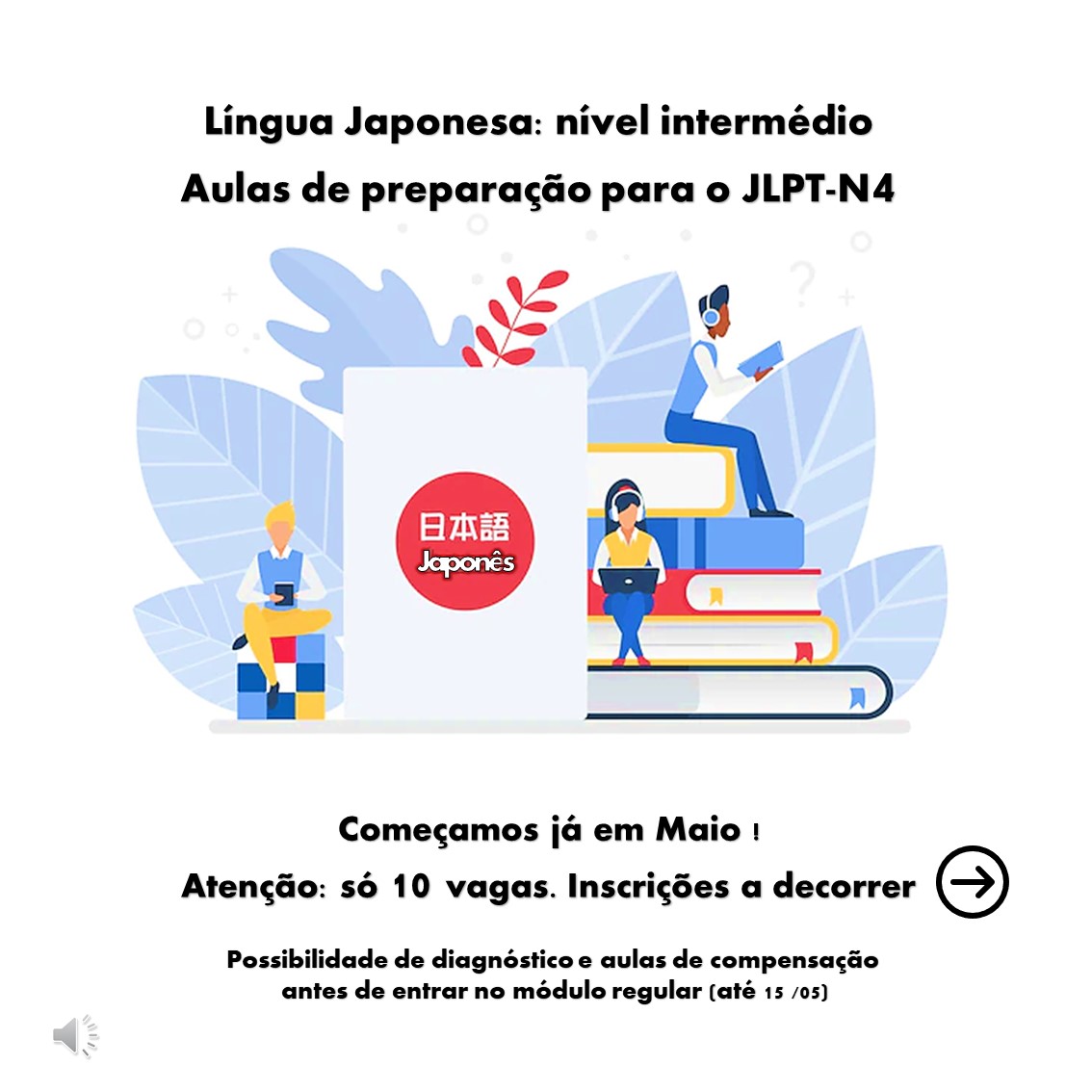 Ao longo dos últimos dois anos, devido à pandemia, os alunos tiveram muito mais dificuldade em prepararem-se para o exame de língua japonesa. Para além disso, o exame não se realizou em 2020 nem em 2021 em Portugal. Neste momento já existe data para a realização do exame este ano – 2022 – mas muitos alunos tiveram de interromper as aulas (se as faziam presencialmente) e agora não podem ir fazer o exame já no Verão. Como o nosso Projecto Cultural e Pedagógico procura criar oportunidades para todos, e não baixa os braços face aos desafios, decidimos lançar um apelo a quem já tinha certificação do JLPT com o nível N3 ou superior, de modo que esteja capacitado para dar as aulas de preparação para os níveis anteriores. Assim, temos finalmente condições de anunciar que vamos abrir módulos de preparação para futuras edições do JLPT, com aulas online, em horário pós-laboral, mediante preços muito acessíveis (o nosso projecto não tem fins lucrativos, estes valores são para os professores), e com programação que visa preparar especificamente para o JLPT N4.