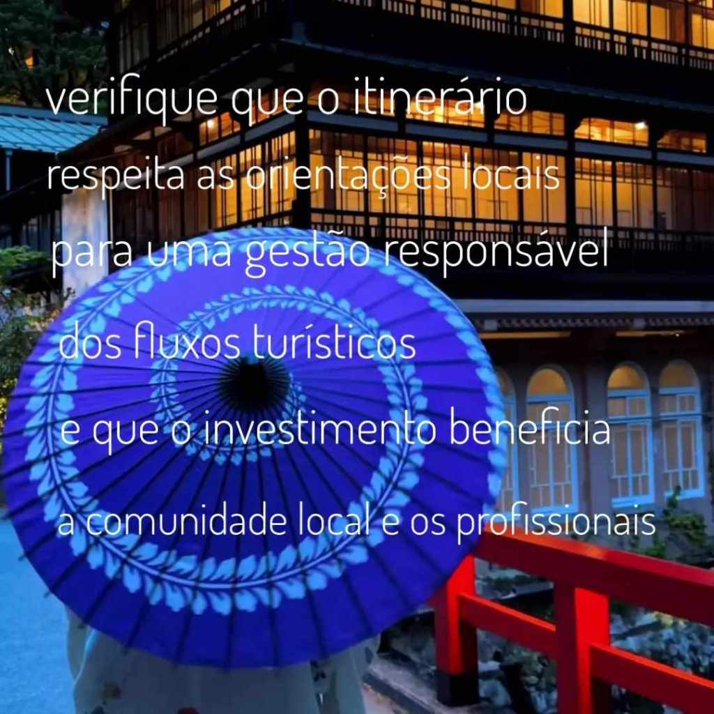 Salientamos o conteúdo desta última recomendação porque desejamos que seja absolutamente claro o seguinte: se existe um programa de atividades que lhe é proposto, deverá ser possível mostrar com prova de fotografia e vídeo – e idealmente com contato direto com a(s) pessoa(s) que o executam – que existe já experiência de o realizar e provas dadas do funcionamento do mesmo. Se um determinado programa, atividade ou itinerário lhe é apresentado como um produto a consumir mas nenhuma prova irrevogável lhe é mostrada sobre esse mesmo produto, nem há registos que o tenham realizado ou como o realizaram, considere seriamente pôr em causa a veracidade da afirmação. A competência para executar um determinado plano não é um requisito para a criação de ferramentas de marketing nem para o posicionamento de um bem, produto ou serviço no mercado da indústria turística (infelizmente), pelo que se tem assistido à venda ou revenda de “experiências” por empresas – mesmo se registadas como agências de viagens – que não são as criadoras dos referidos programas originalmente nem têm capacidade para os realizar (entre outros motivos, porque não os realizaram antes, já que nos últimos três anos não existiu turismo internacional no Japão).